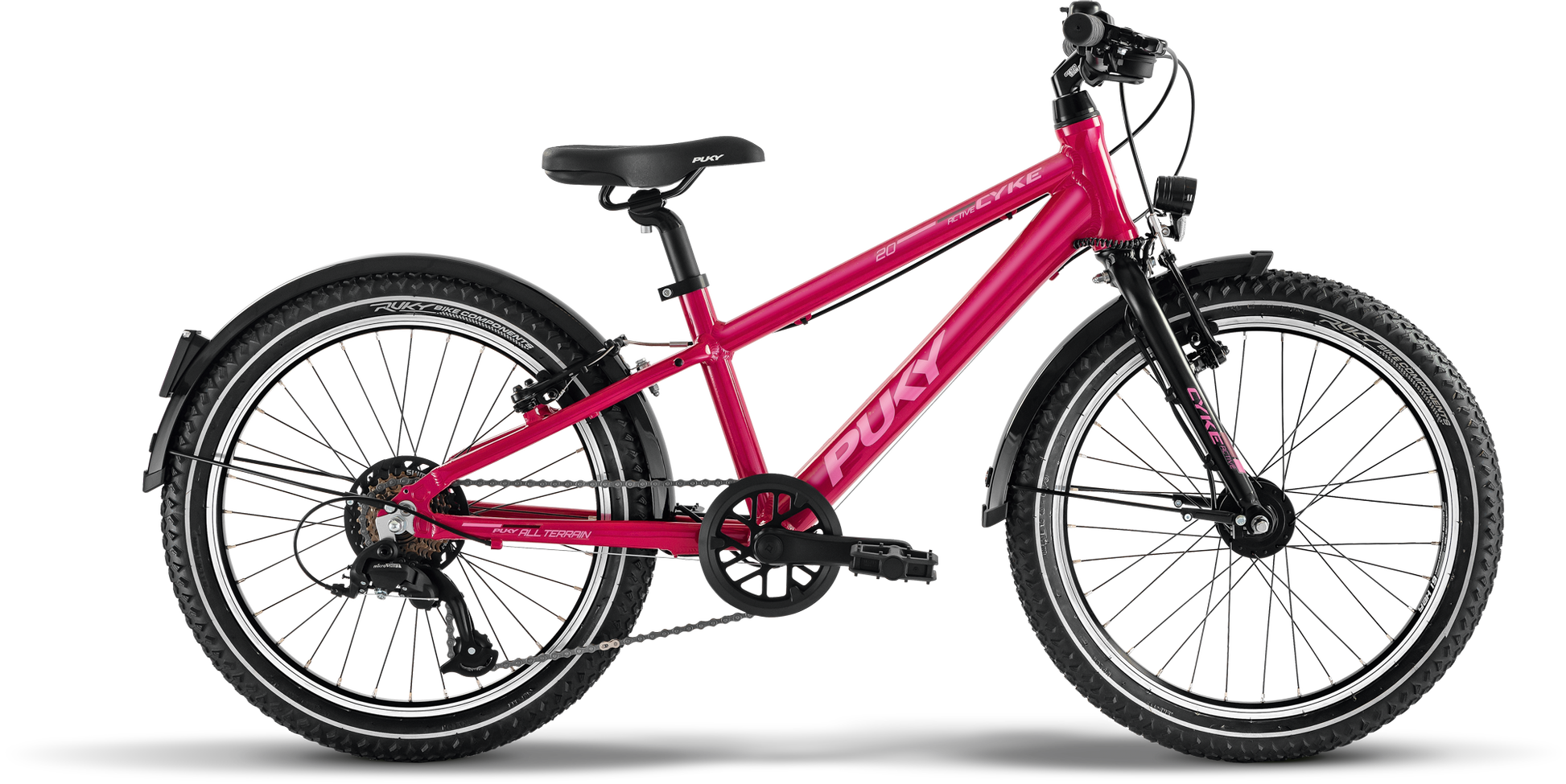 Rowerek PUKY CYKE 20-7 ACTIVE to idealny rowerek dla aktywnych dzieci od 6 roku życia z wewnętrzną długością nóg 53 cm. Dzięki wyjątkowym funkcjom wyposażenia i wszechstronnemu zakresowi zastosowań jest to naprawdę wszechstronny model; na ulice i łatwy teren.Lekka aluminiowa rama, aluminiowy widelec i aluminiowe felgi sprawiają, że rower jest wyjątkowo wytrzymały i trwały. Opony 20x2.0 o terenowym wyglądzie zapewniają dobrą przyczepność i komfort jazdy na różnych nawierzchniach.Aby zapewnić bezpieczne i niezawodne hamowanie, PUKY CYKE 20-7 ACTIVE jest wyposażony w dwa hamulce V-brake z regulowaną dźwignią hamulca. Pozwala to na optymalne dopasowanie hamulców do potrzeb dziecka.Dzięki 7-biegowej przerzutce i manetce ze wskaźnikiem przełożenia dziecko może łatwo wybrać odpowiednie przełożenie i bez wysiłku połykać kolejne kilometry. Zarówno siodełko, jak i kierownica mają regulację wysokości, dzięki czemu rowerek rośnie razem z dzieckiem i może służyć przez kilka lat.Szczególną uwagę zwrócono na ergonomiczną konstrukcję roweru. Dzięki obniżonemu przekrokowi i wyprostowanej pozycji siedzącej rowerek jest optymalnie dostosowany do potrzeb dzieci i umożliwia wygodną i bezpieczną jazdę.Rowerek PUKY CYKE 20-7 ACTIVE spełnia również wymagania przepisów o ruchu drogowym (StVZO). System oświetlenia ze zintegrowanym dynamem w piaście i reflektorami LED powodują że dziecko jest zawsze dobrze widoczne i może bezpiecznie podróżować.Podpórka i dzwonek są dołączone, a pasujący bagażnik jest dostępny jako akcesorium.Rowerek PUKY CYKE 20-7 ACTIVE to doskonałe połączenie jakości, bezpieczeństwa i funkcjonalności. Dzięki atrakcyjnemu wzornictwu i solidnej konstrukcji jest idealnym towarzyszem dla żądnych przygód dzieci, które chcą odkryć wolność jazdy na rowerze.