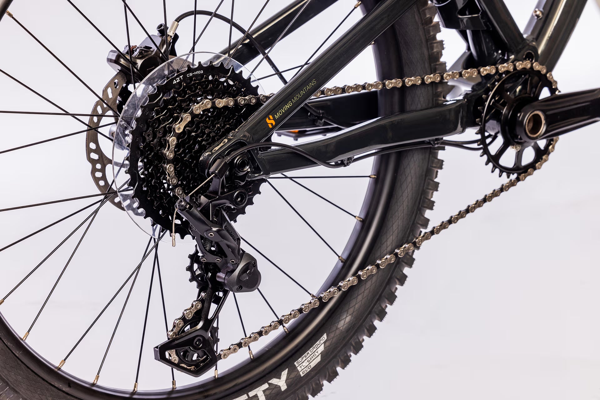 10-biegowa przekładnia Microshift Advent X z manetką typu trigger zapewnia zawsze właściwy bieg. Napęd 30T Narrow Wide z przełożeniami 11-42T pozwoli Ci pokonać każde wzniesienie.