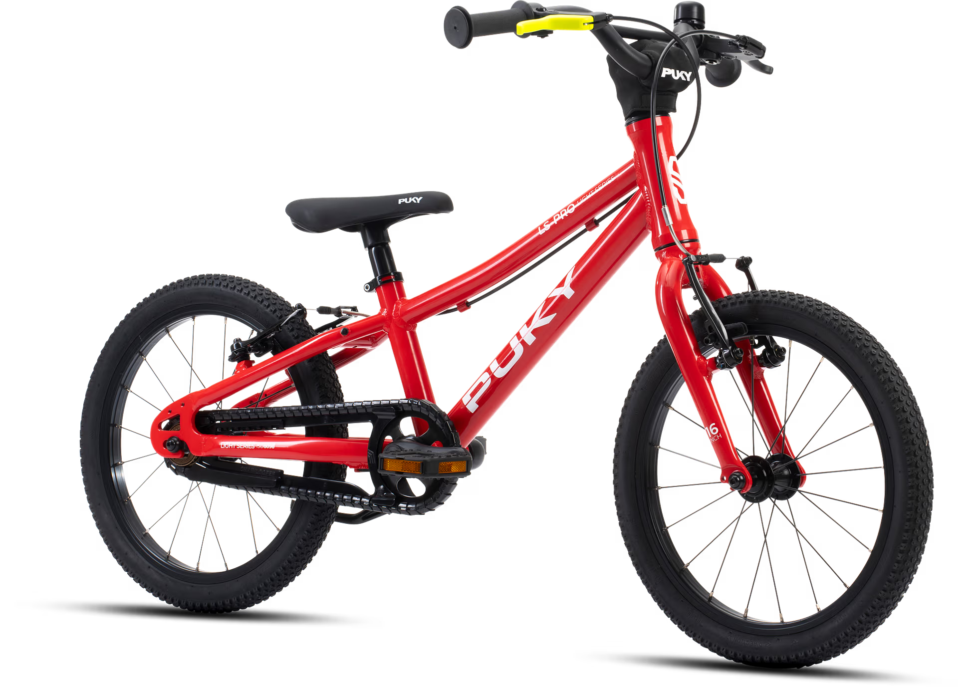 Dzięki LS-PRO 16 firmy PUKY rodzice mają idealny rower dla swoich młodych rowerzystów w wieku od 3 lat. Super lekka, ale stabilna rama wykonana z wysokiej jakości aluminium zapewnia rowerowi optymalną równowagę między stabilnością a sportowym prowadzeniem. Lekki aluminiowy widelec i koła zapewniają wyjątkowo zwinne manewrowanie, a opony terenowe gwarantują optymalną przyczepność na każdej nawierzchni.Dzięki przyjaznym dla dzieci hamulcom V-brake na przednim i tylnym kole młodzi rowerzyści mogą polegać na niezawodnej skuteczności hamowania. Swobodnie obracająca się korba zapewnia optymalną pozycję pedału dla każdego małego rowerzysty. Lekki mostek Ahead i szeroka, wysoka kierownica wykonana z lekkiego aluminium zapewniają optymalną kontrolę i umożliwiają wygodną i bezpieczną jazdę.Ale drobne szczegóły sprawiają, że LS-PRO 16 firmy PUKY jest wyjątkowym rowerem. Zredukowana średnica kierownicy poprawia chwyt i hamowanie rączek małych dzieci, a specjalnie opracowane i bardzo lekkie siodełko dziecięce ze zintegrowaną aluminiową sztycą gwarantuje optymalny komfort siedzenia. Regulując wysokość siodełka, można indywidualnie ustawić optymalną pozycję siedzącą dla dziecka na rowerze.Przyjazna dzieciom ergonomia roweru ze zmniejszonym przekrokiem i wyprostowaną pozycją siedzącą zapewnia wysoki poziom bezpieczeństwa i komfortową jazdę. Wąski suport o niskim współczynniku Q pozwala na naturalne i efektywne pedałowanie.Dzięki LS-PRO 16 firmy PUKY młodzi rowerzyści są optymalnie przygotowani do swoich pierwszych przygód na dwóch kołach. Jest to idealny rowerek do rozwijania pewności siebie i zdolności motorycznych dzieci oraz dostarczania im wielu frajdy i radości z jazdy na rowerze.